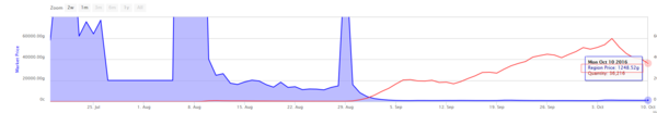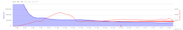这张图能看出,从混沌补丁信息被爆出有一个大幅度的出货阶段,以及后期的两个小阶段的市场数量和市场价格的浮动折线。从这个折线能看出。
