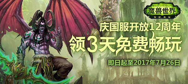 你还在等什么呢?快来领取免费三天畅玩时间,感受《魔兽世界》7.2的独特内容,加入战歌峡谷全新乱斗吧!