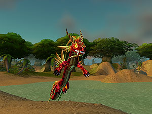 于是我们想到了一个点子:制作一个全新的、像北美 WoW 典藏版中赠送的小熊猫宠物那样憨态可掬的虚拟宠物,只不过这个新的虚拟宠物只有通过参加 iCoke 促销活动才能得到。确定了这个方向之后,我们开始确定要制作一个怎样的虚拟宠物。很自然地,我们认为制作一条具有中国民族特色的龙是最好的选择 —— 想想看,一条来自东方的小龙跟着它那幸运的主人,在充满着西方风味的魔兽世界中跑来跑去,这是多么有趣的事情啊!