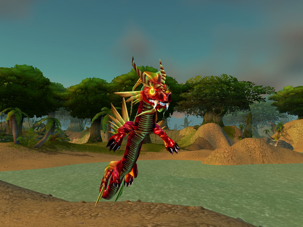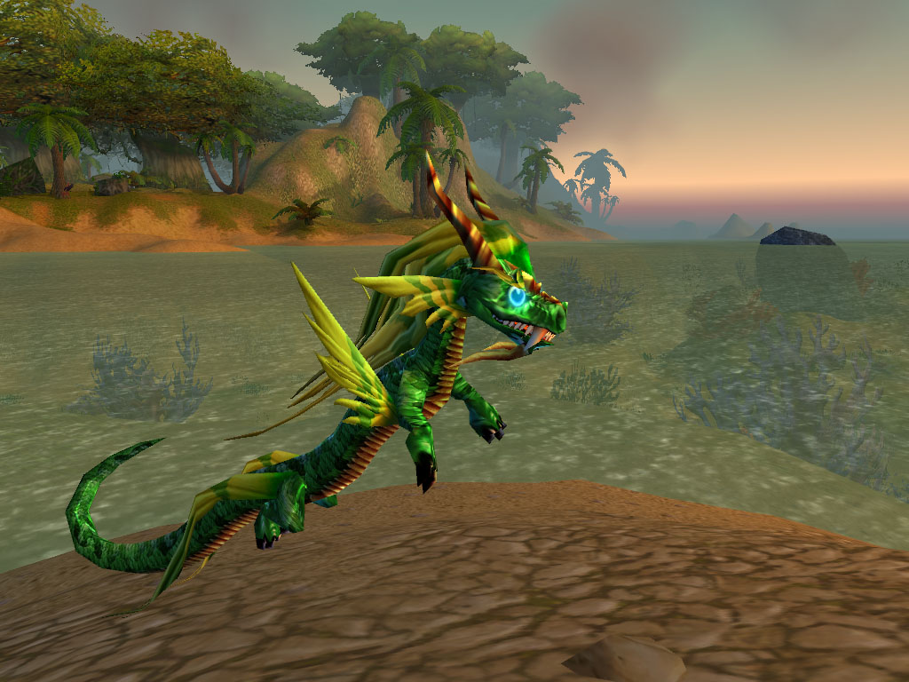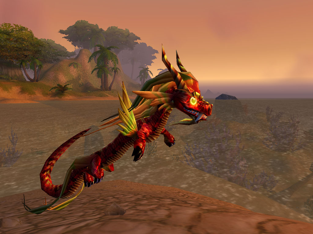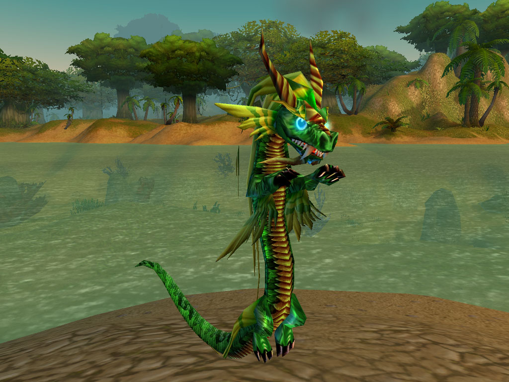 于是我们想到了一个点子:制作一个全新的、像北美 WoW 典藏版中赠送的小熊猫宠物那样憨态可掬的虚拟宠物,只不过这个新的虚拟宠物只有通过参加 iCoke 促销活动才能得到。确定了这个方向之后,我们开始确定要制作一个怎样的虚拟宠物。很自然地,我们认为制作一条具有中国民族特色的龙是最好的选择 —— 想想看,一条来自东方的小龙跟着它那幸运的主人,在充满着西方风味的魔兽世界中跑来跑去,这是多么有趣的事情啊!